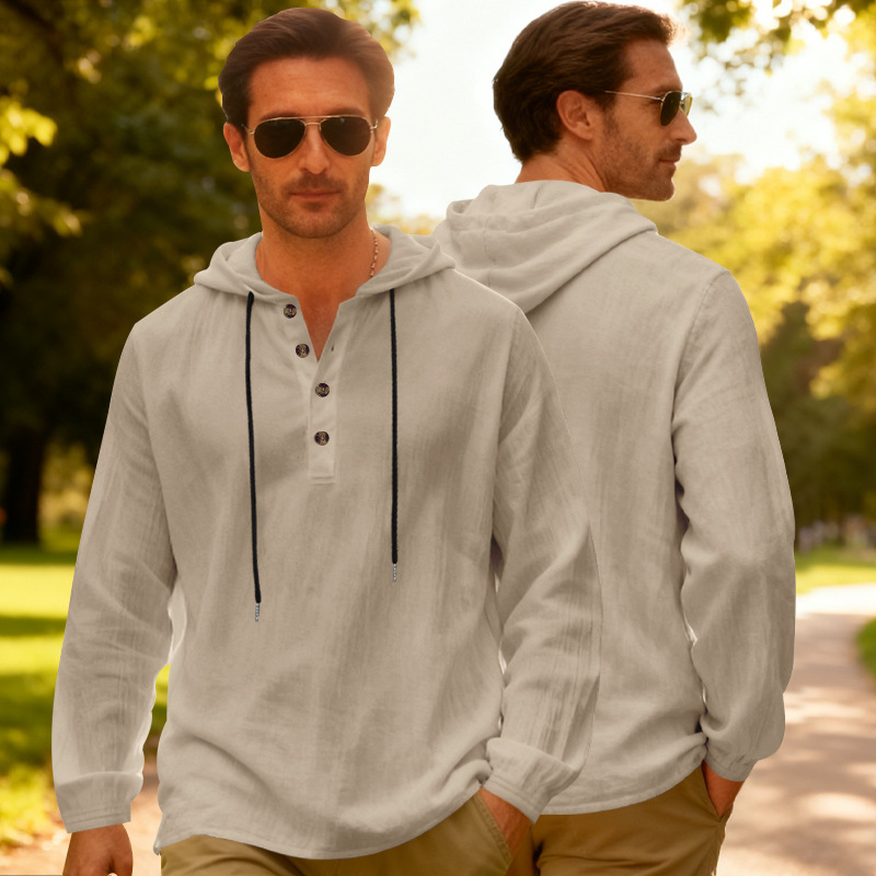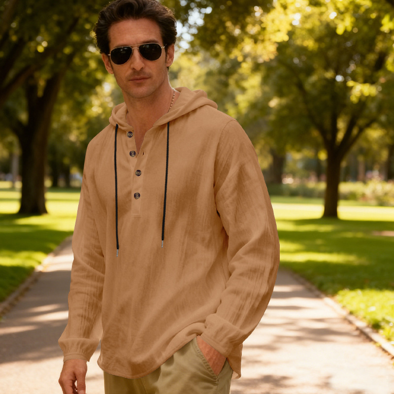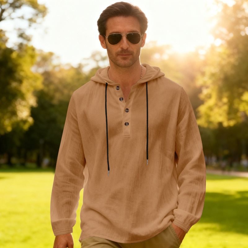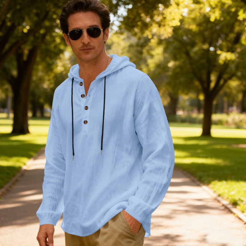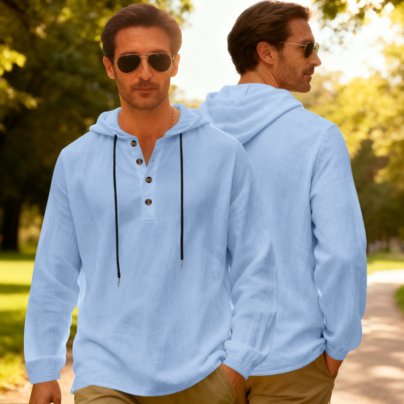 Yama Mens Breathable Hooded Long-Sleeve Beach Shirt