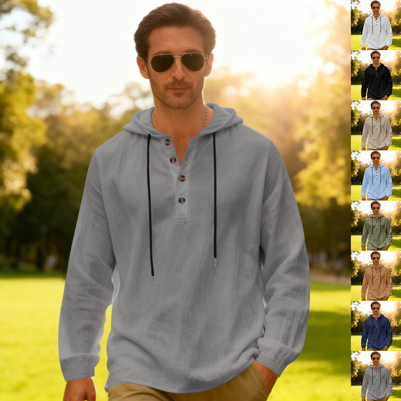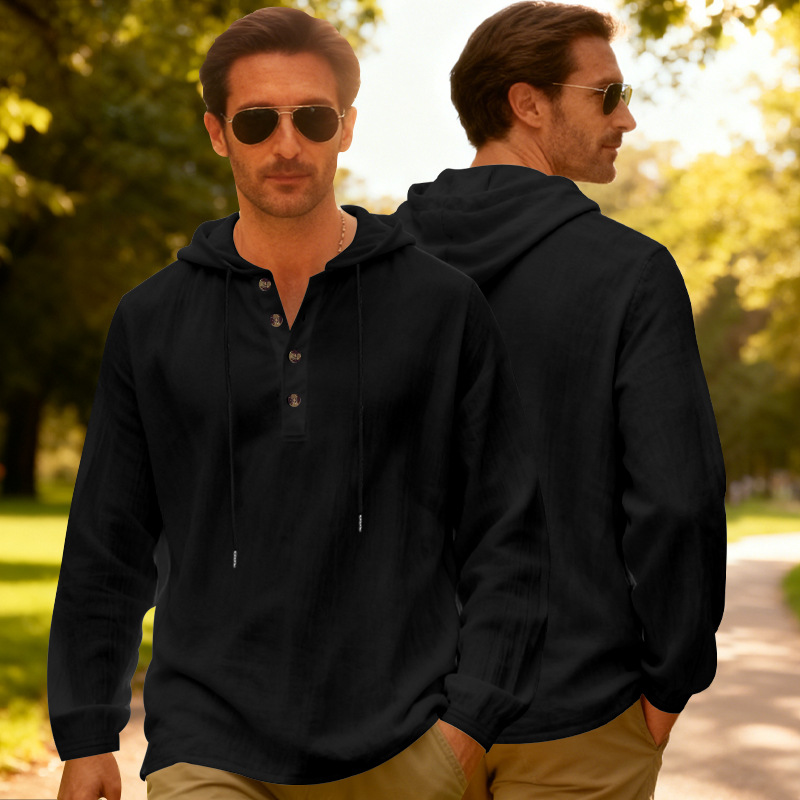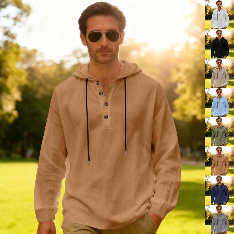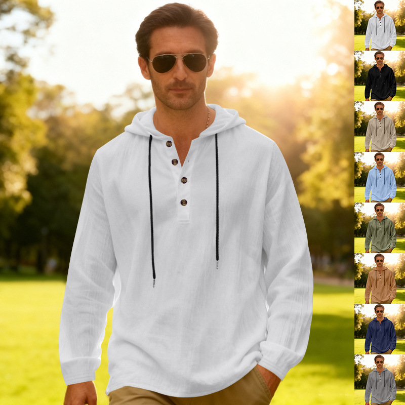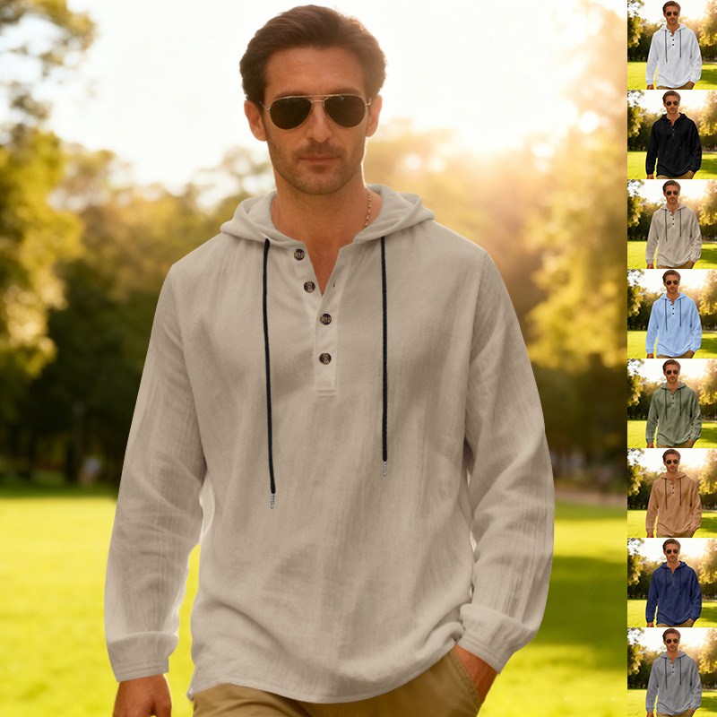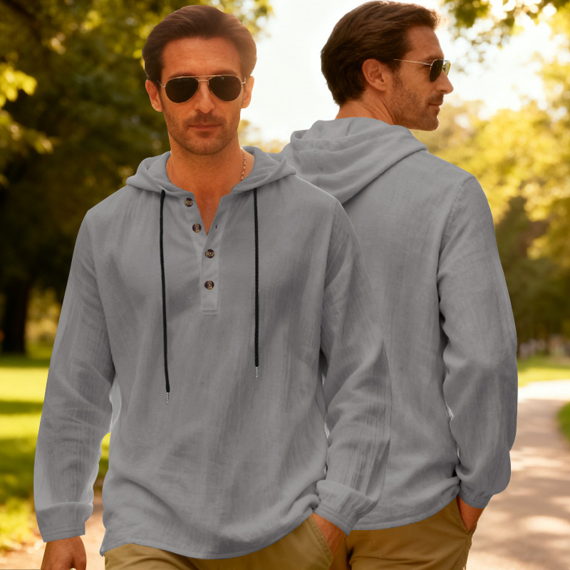 Yama Mens Breathable Hooded Long-Sleeve Beach Shirt